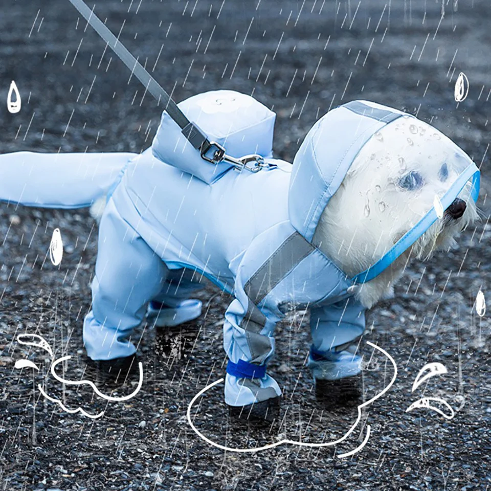 Solid Color Pet Raincoat Dog Outdoor Waterproof Three-Dimensional Backpack Clothes Pet Can Be Pulled with Feet Clothing